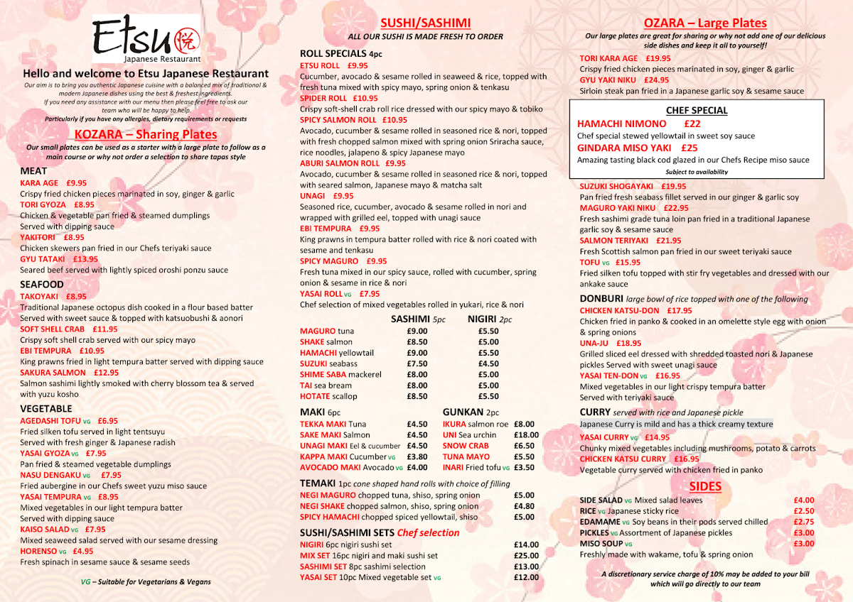 Welcome to Etsu - 25 The Strand, a hidden gem in the heart of Liverpool, where authentic Japanese cuisine comes to life. This charming venue offers a diverse menu that boasts an impressive selection of sushi, gyoza, and tempura, ensuring there’s something for everyone. Delve into the delightful Yasai Gyoza and experience the crispy texture of pan-fried vegetable dumplings for £7.95. Don’t miss the Agedashi Tofu—fried silken tofu served in a light tentsuyu, perfectly complemented by fresh ginger and Japanese radish, available for just £6.95.