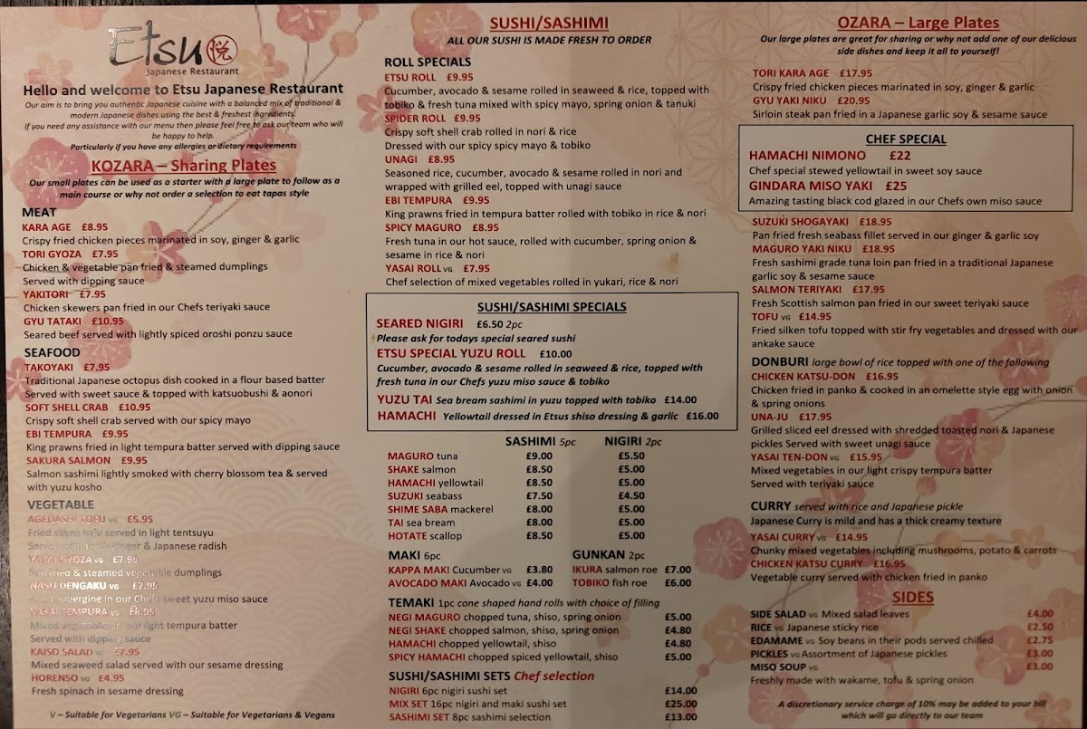 For sushi lovers, the Maguro and Shake nigiri are must-tries at £5.50 and £5.00 respectively, showcasing the freshness of quality fish. The ambiance is as inviting as the food, giving you an authentic Japanese dining experience. With a range of superb alcoholic options, including sake and a refreshing selection of plum wines, Etsu is ideal for both casual meals and special occasions. Come visit and prepare to be delighted!